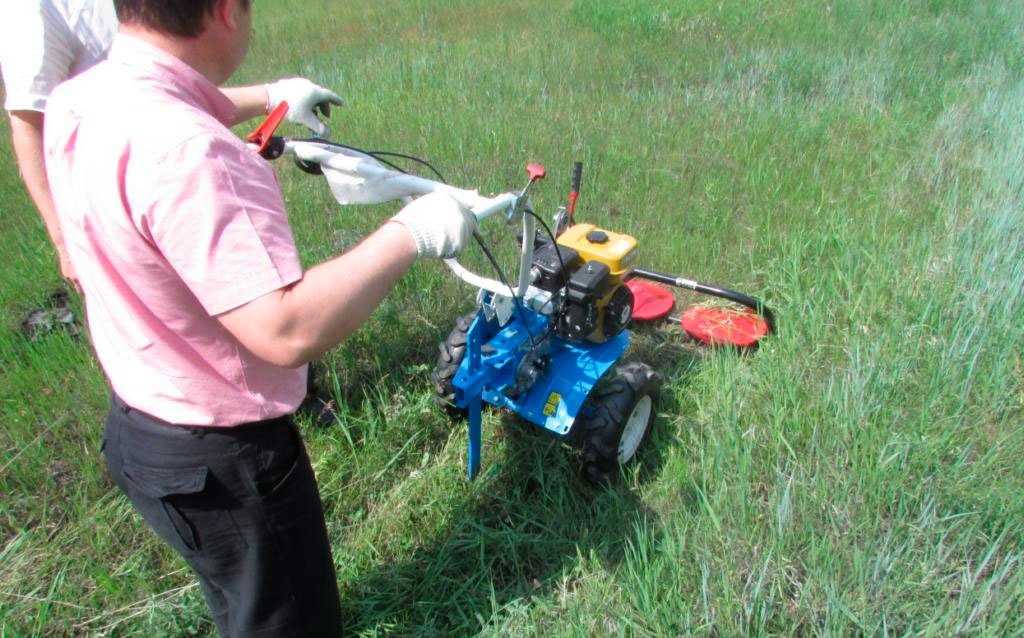 Если на мотоблоке установлены утяжелители, имеет смысл их снять, поскольку в процессе покоса они не требуются. После запуска следует опробовать работоспособность устройства на малых оборотах. Если косилка собрана своими руками, перед работой необходимо убедиться в надежности всех креплений и обеспечении безопасности работы.