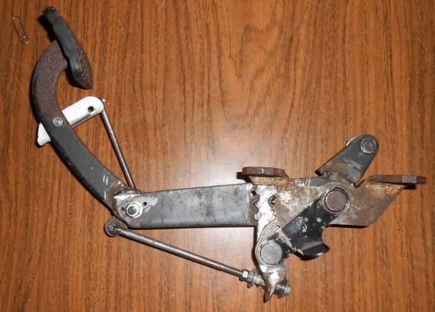 - Рычаг регулировки, расположенный в корпусе и состоящий из винта, соединенного с кронштейном и рукояткой. При этом кронштейн должен быть направлен вверх или вниз и не создавать никаких помех при работе агрегата.