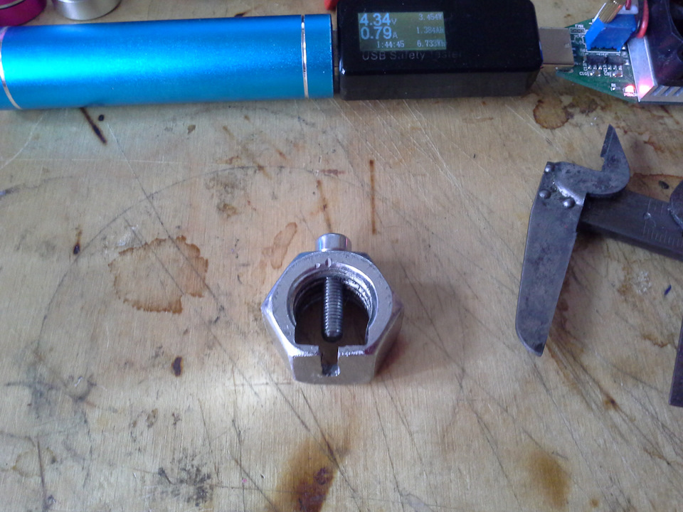 я к чему это написал, на Али и в магазах, такой съемник стоит от 400 до 1500 рублей, сделать его можно из того что есть, даже если покупать все, то гайка стоит 30руб в леруа, метчики 100руб максимум, напильник наверняка есть у каждого, руки и время.Прорезь сделал болгаркой, отрезным кругом, тем же кругом и расширил.