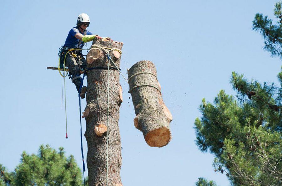 Упавшее растение нужно правильно распилить. После валки осуществляется срезка ветвей. Срезка начинается с дальних веток. Мелкие ветви спиливаются сверху, а крупные упорные ветви требуют подпила сверху, после чего выполняется обрезка снизу, что не позволит зажать пилу.