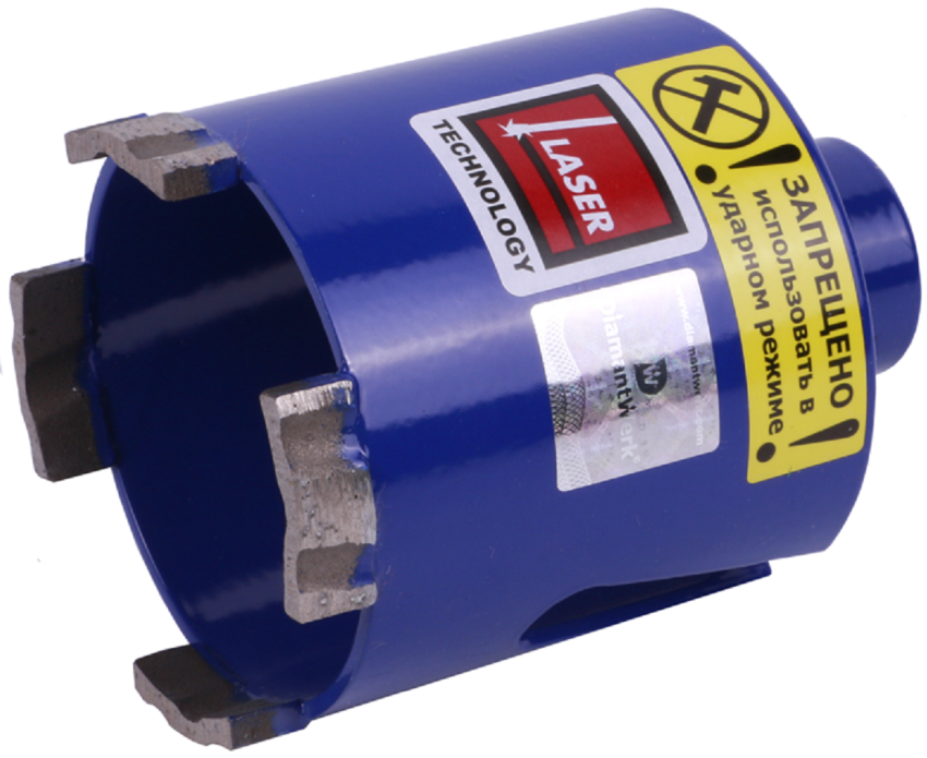 При изготовлении коронок, не требующих принудительного охлаждения, режущие насадки свариваются с основанием при помощи лазера. Такой инструмент может быть подвержен более высокой термальной нагрузке, но, к сожалению, при выходе из строя, он не подлежит восстановлению.