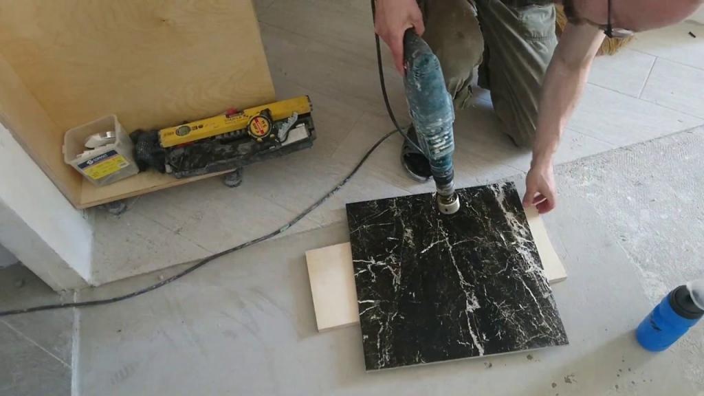 Сверление отверстий алмазной коронкой в кафельной плитке