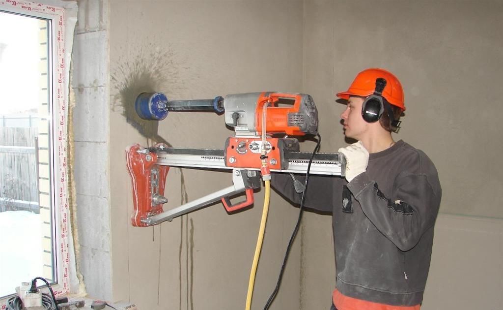 Если выполняется масштабный ремонт, то приходится находить и использовать специальное оборудование, которое используется при сверлении бетона.
