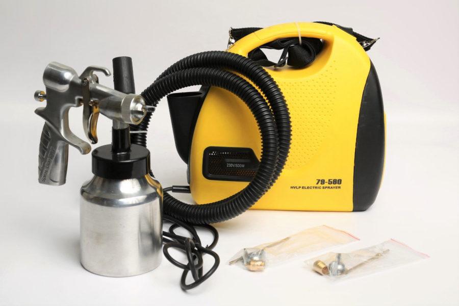 Этого недостатка лишены электрические краскопульты. Они оснащаются соплами с маленьким сечением, куда краска подается под большим давлением, через шланг. Практически весь материал доходит до поверхности, повышая производительность. Минусом служит неравномерность нанесения, нередко состав наслаивается на поверхность.
