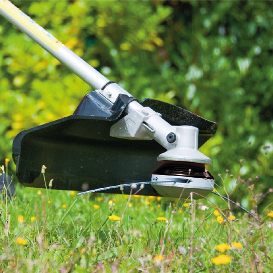 Он эффективно справляется с удалением густой травы и дикорастущих кустарников за счет вращения со скоростью до 6850 оборотов за минуту, скашивая за один проход 26 см.