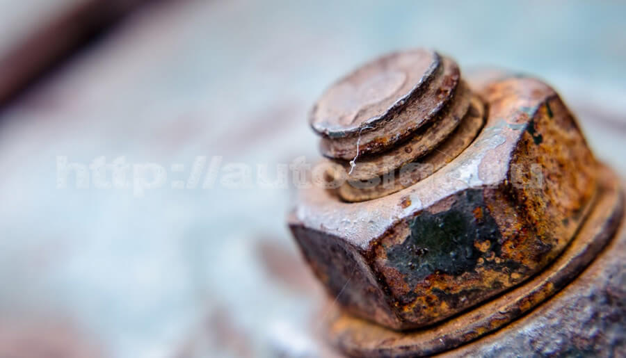 - Нанести бензин, керосин или смазку наподобие WD-40 на высвобождаемые гайку и болт. Можно обмотать их пропитанной указанным составом ветошью и оставить так минут на 20-30.