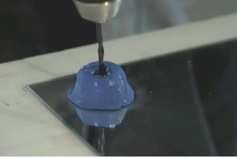 - Когда вы находитесь в завершающей стадии, т.е. когда отверстие почти готово, необходимо перевернуть стеклянный лист и просверлить отверстие с другой стороны. Эта операция позволяет избегать трещин или сколов, а также вы получите отверстие правильной формы.