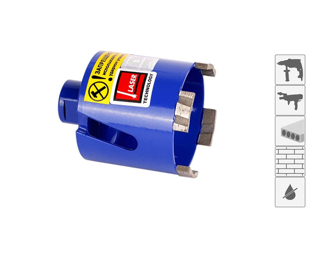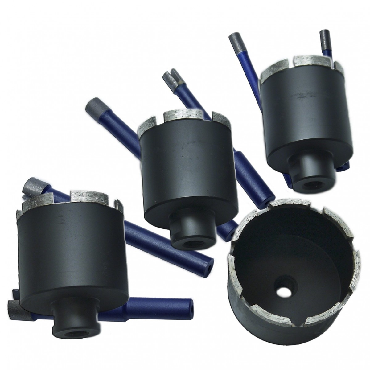 При изготовлении коронок, не требующих принудительного охлаждения, режущие насадки свариваются с основанием при помощи лазера. Такой инструмент может быть подвержен более высокой термальной нагрузке, но, к сожалению, при выходе из строя, он не подлежит восстановлению.