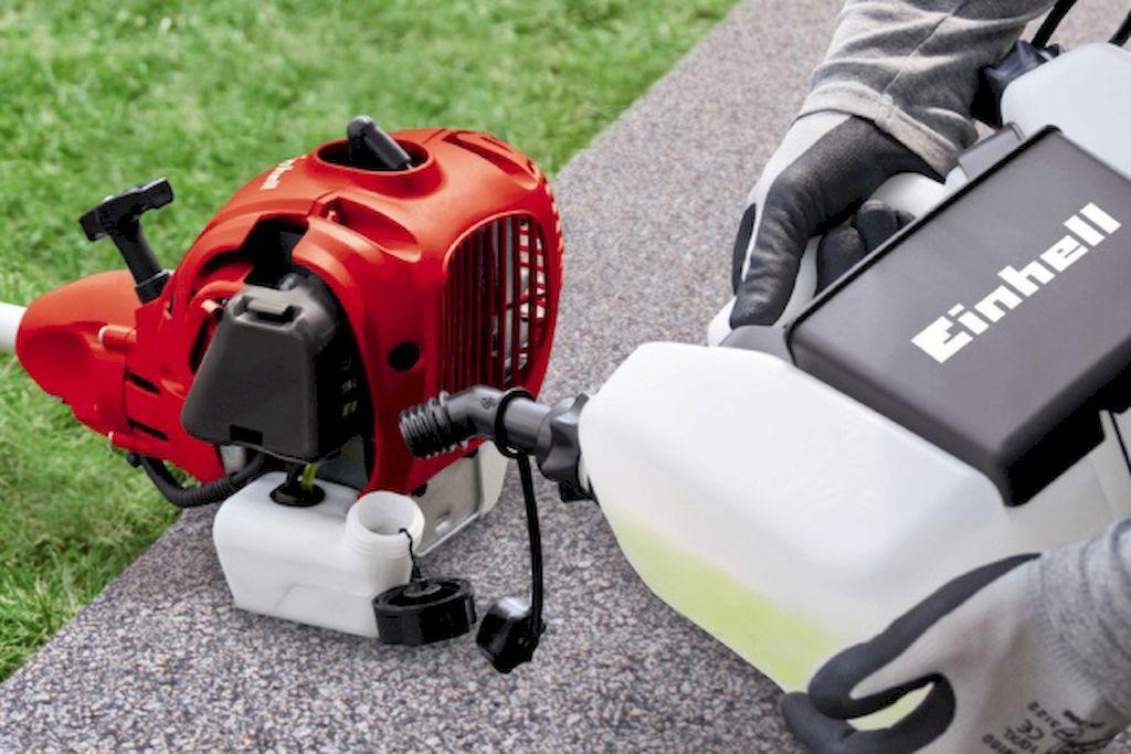 Для заправки бензиновых триммеров такого типа необходимо следовать уже описанной инструкции. Необходимо строго выдерживать соотношение масла и не допускать проливания на корпус инструмента. Следите за тем ,чтобы бензобак не переполнялся, поскольку в таком случае мотор будет работать нестабильно.