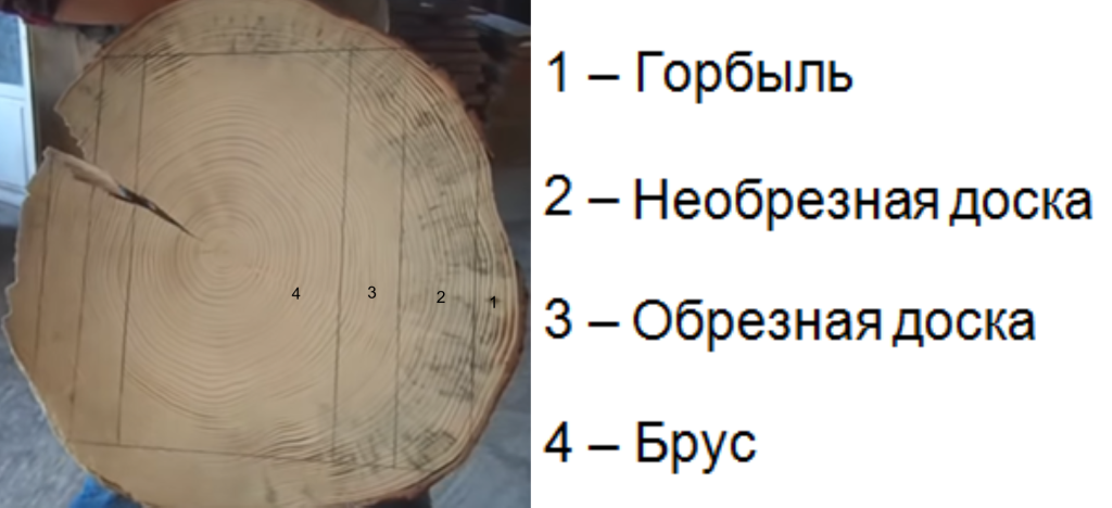 В зависимости от ориентации годичных колец пользуются разными видами раскроя бревна: