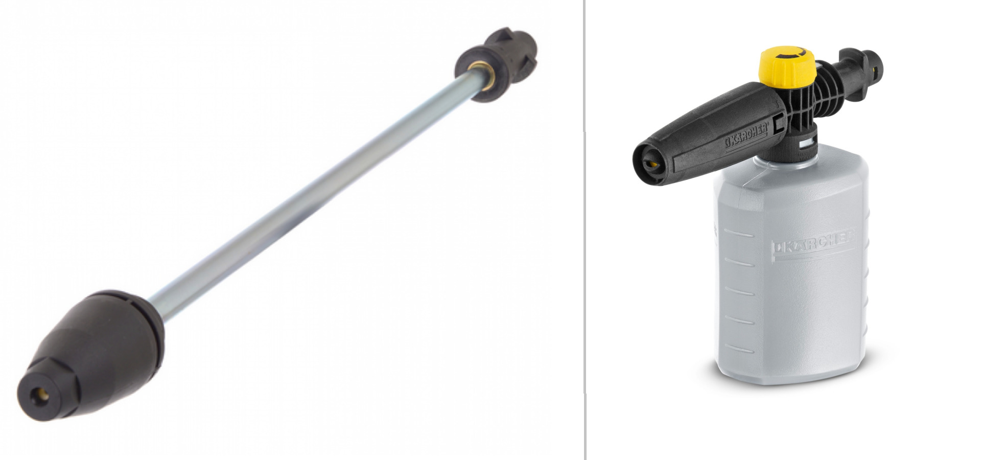 Данная модель имеет дополнительные аксессуары, незаменимые для очистки автомобиля от грязи. Благодаря грязевой фрезе существует возможность формирования точечной струи для интенсивной очистки.