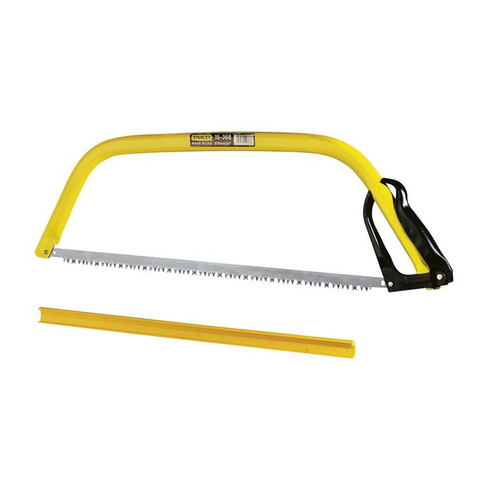 - Изделие от Stanley Raker Tooth. Оно отменно подойдет для проведения работ с не очень большими заготовками из дерева. Сечение рамы из стали в виде овала гарантирует данному изделию повышенную стойкость. Здесь присутствует рычаг, с помощью которого можно качественно натянуть полотно и быстро его сменить, если это будет необходимо. Сделана пила из особого вида стали – закаленной. Зубцы здесь будут иметь форму, которая в обиходе именуется американской – для них не нужно затачивание или постоянный уход. Данный инструмент прекрасно справляется с сухой древесиной и совершенно свежими материалами.