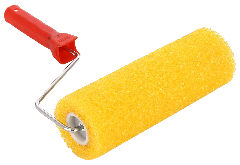 Валик поролоновый (пенополиуретановый). Пенополиуретан благодаря вспененной мелкоячеистой структуре впитывает много краски, постепенно выдавая ее на поверхность, — это существенно повышает производительность, но требует аккуратности: при избыточном нажатии на валик краска просто потечет.