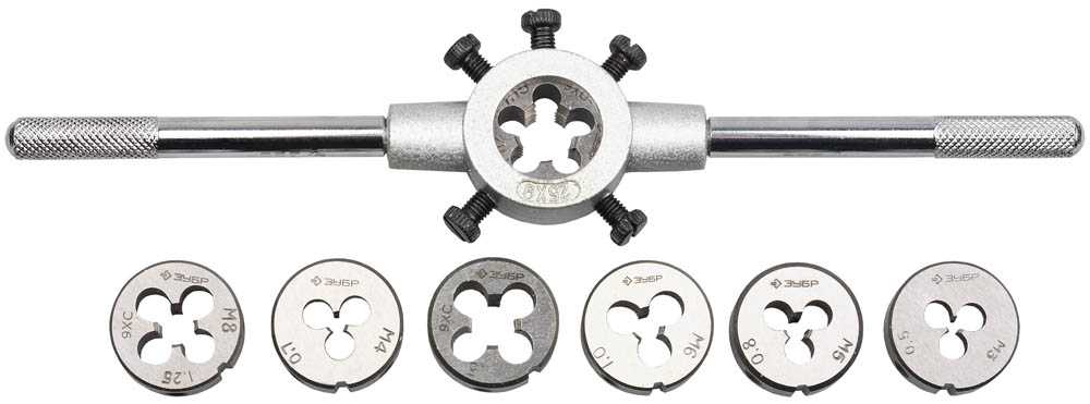 Для нарезки наружной резьбы вручную применяется специальный инструмент — плашкодержатель с плашками различного диаметра.