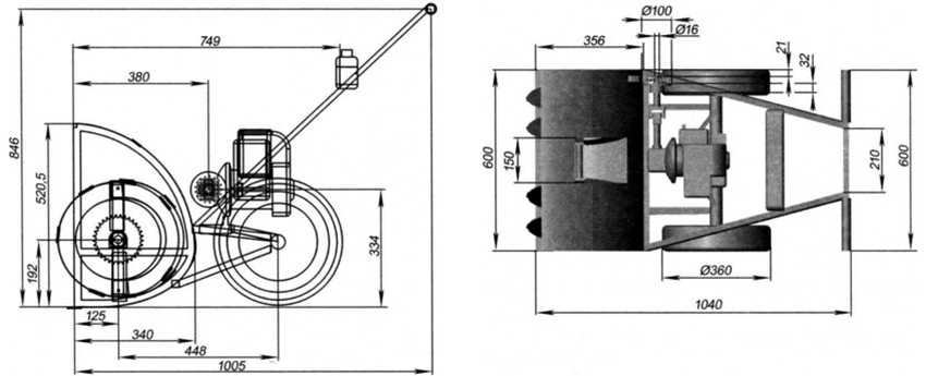 Чертеж снегоуборщика выполненного своими руками с применением бензопилы.