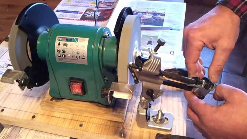 Современные модели работают практически автоматически В конструкции предусмотрен не только механизм фиксации, но и подачи оснастки к заточному инструменту.