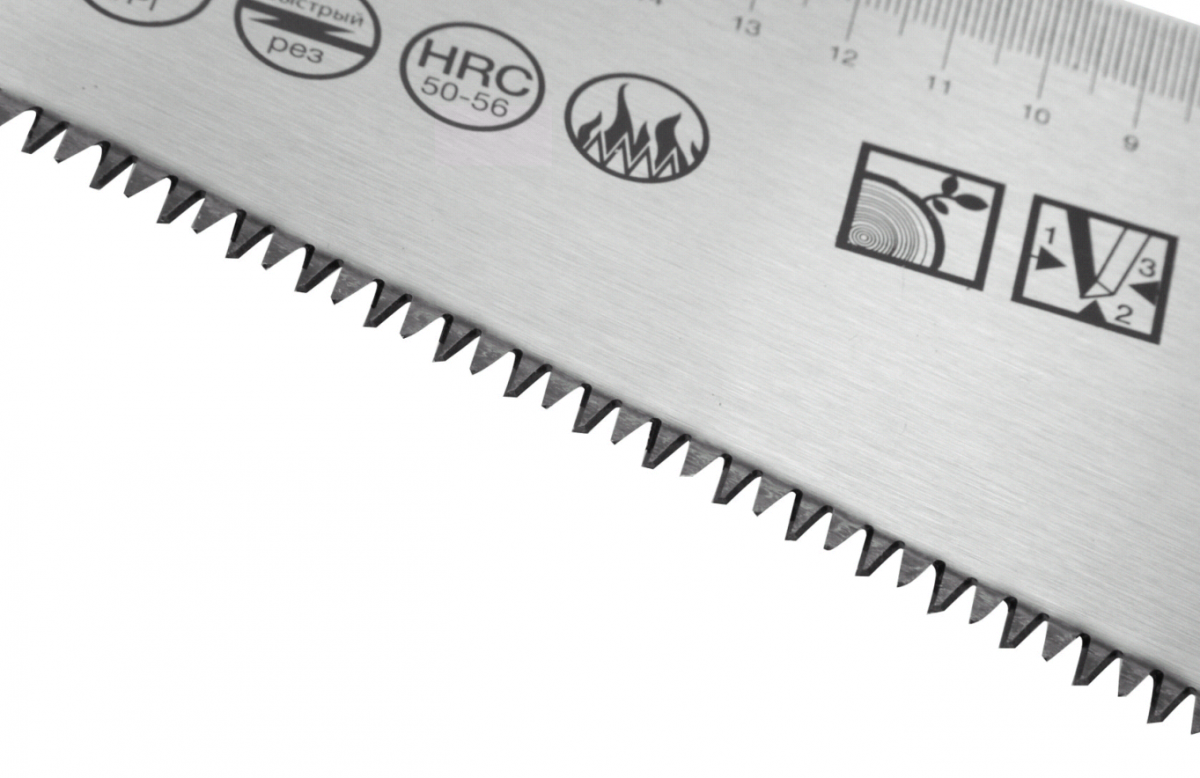 Рукоять оснащена защитой пальцев с обрезиненной частью для удобного хвата пальцами. Режущая кромка – закаленные зубья «американского» профиля. Предназначена для работы с сырым деревом, отлично обеспечивает как поперечный, так и продольный рез. Хорошо режет ветки, сучья.