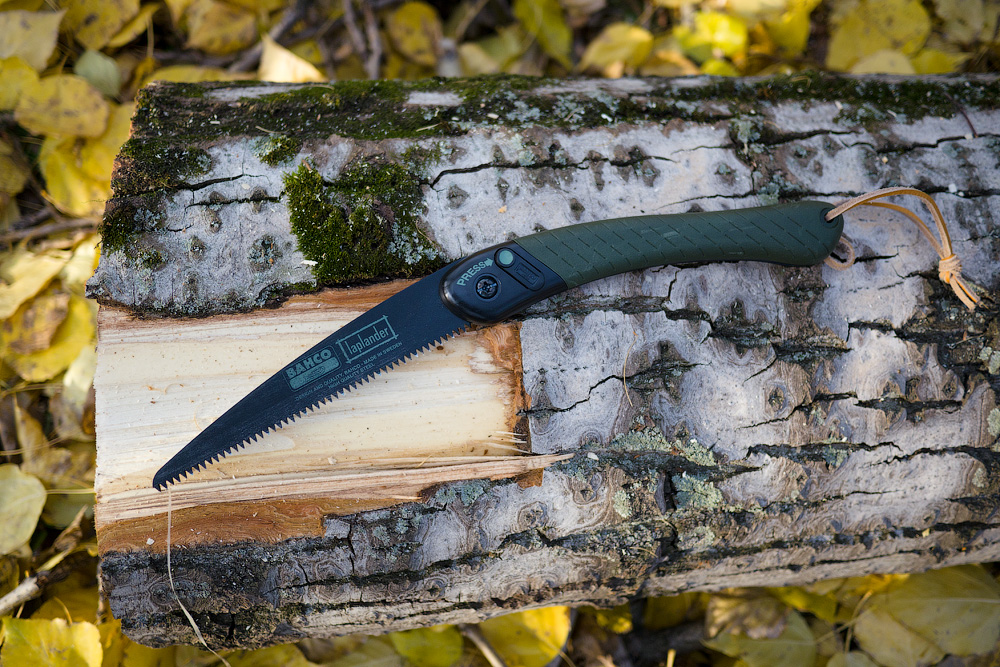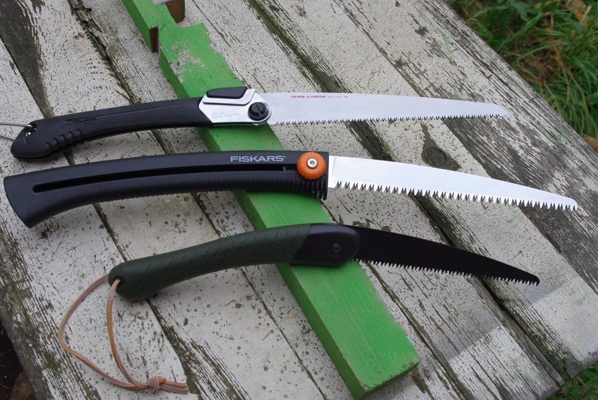 - Складная пила. Обычно у такого инструмента отсоединяется или поворачивается рукоятка, делая общую длину ножовки заметно короче. Удобна в походе, поездке или иных полевых условиях.