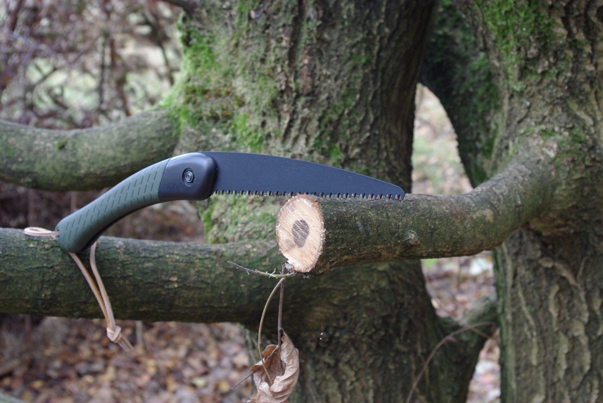 Небольшая лучковая пила для работы в ограниченном пространстве. По сути, это незаменимая ножовка для работы в саду с приставных лестниц.