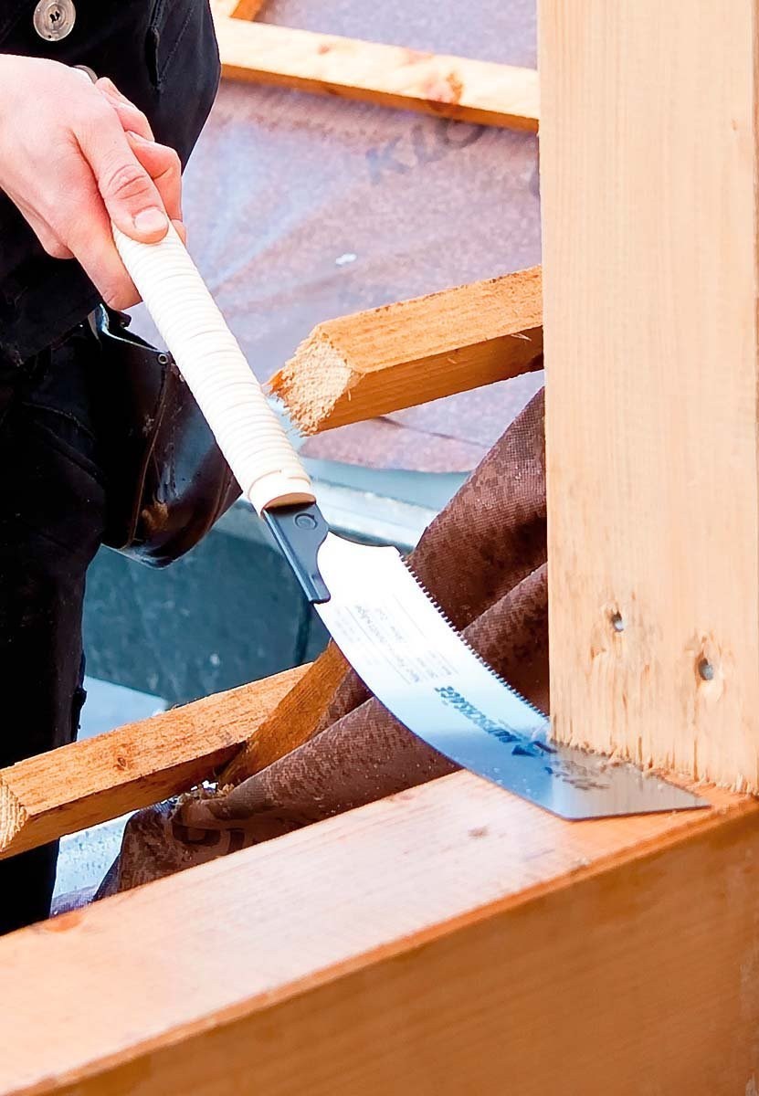 - 40-см полотно с пластиковой рукоятью предназначено для поперечного пиления древесины.