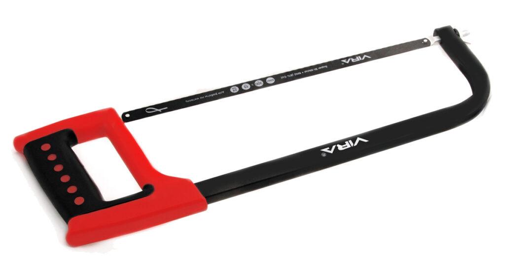Рукоятка имеет анатомическую форму, изготовлена из прорезиненного материала. При пилении – не скользит, не натирает, не режет ладонь. Наклонная конструкция рамы позволяет оптимизировать усилие. Комплектуется полотном из инструментальной закалённой стали, зубцы мелкие, частые, остро заточены. Лезвие обладает повышенной износоустойчивостью.