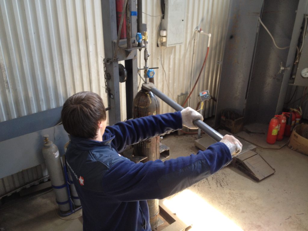 Подготовка баллона к проверке: перед испытаниями корпус баллона и запорная арматура очищаются от загрязнений, из резервуара удаляют остатки газа. Затем емкость очищают паром под высоким давлением. Подготовка завершается проверкой газоанализатором для выявления остатков газа.