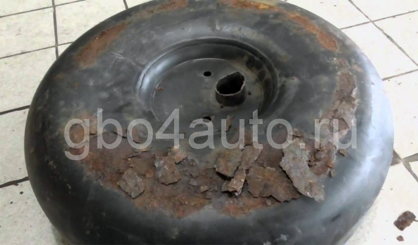 Если баллон подвергся коррозии (в пределах норм естественной утраты внешнего вида), не влияющей на безопасность ГБО, то перед работами по опрессовке выполняется подготовка баллона.