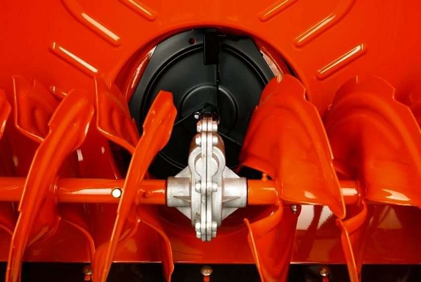 Ширина полосы захвата – 76,4 см, глубина – не более 54 см. Фирменный механизм шнека хорошо справляется и с настом, и с мокрым снегом, рыхлый же для него и вовсе не является проблемой. Корпус шнеков можно перемещать с помощью педали, не нуждаясь в остановке и раскручивании замерзших гаек ключами.