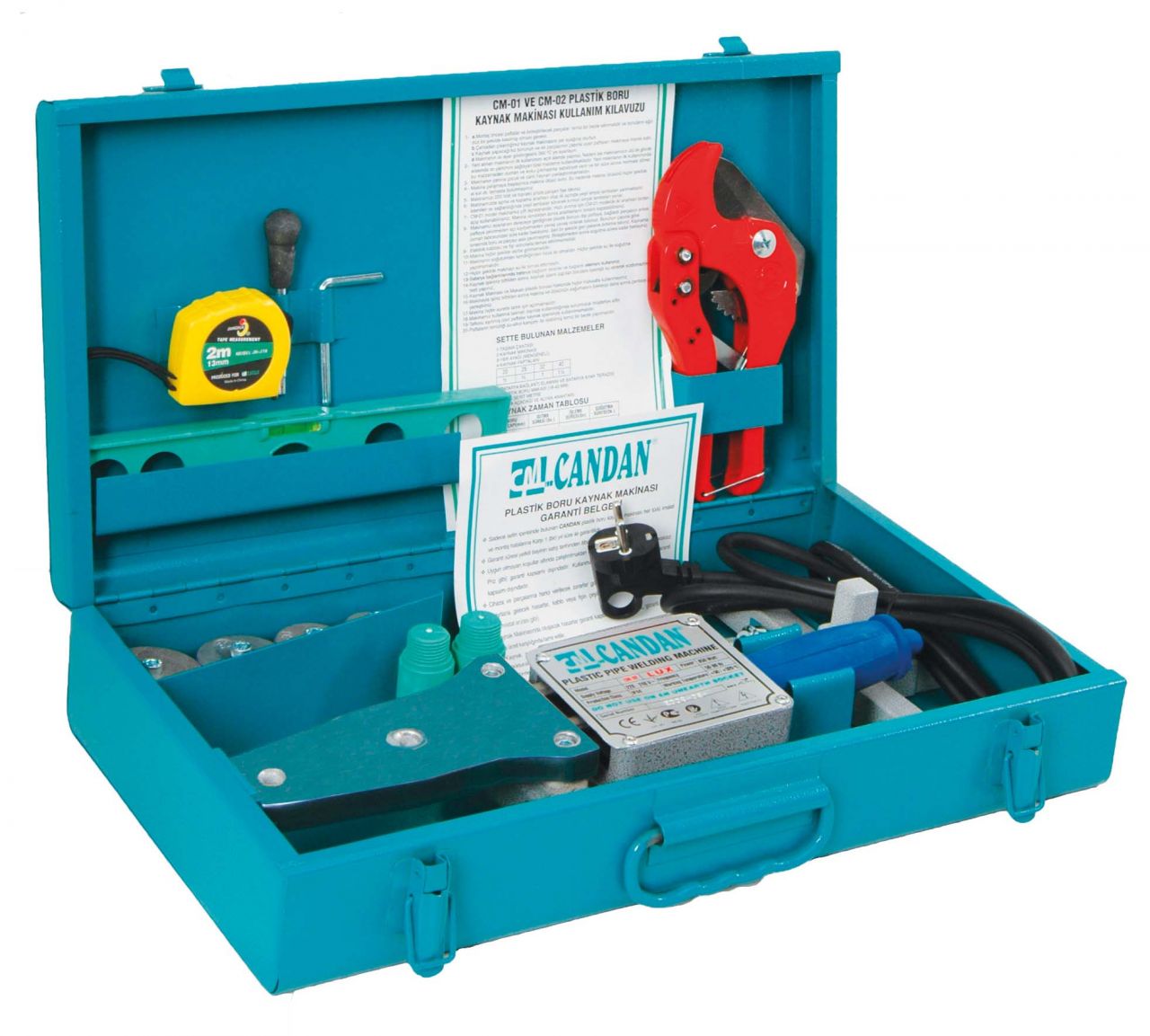 Сантехнический инструмент используется для контактной сварки труб и муфт из полипропилена. Упакован в металлический ящик вместе с подставкой-станиной, уровнем, комплектом сменных нагревательных элементов разного диаметра, ножницами, рулеткой и шестигранным ключом для фиксации матриц. Прилагается руководство по эксплуатации. Электропаяльник разогревается за 10 минут. На корпусе прибора размещается индикаторная лампочка включения и контроля нагрева, степень которого можно регулировать.