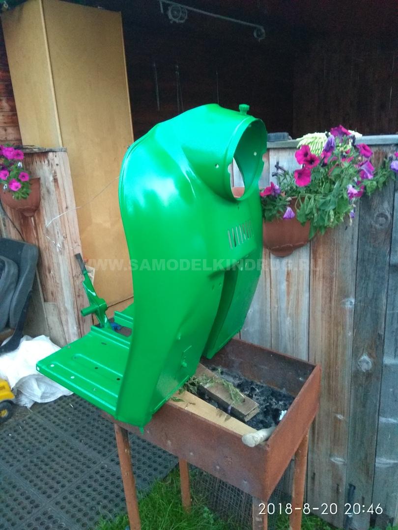 Сначала из кусков пенопласта вырезается «болванка» корпуса, для чего потребуется разработать предварительный чертеж. На подготовленную форму наносится стекловолокно. Слоев будет несколько, поэтому между ними устанавливаются металлические крепления для последующей фиксации нового обвеса к раме. Чтобы каждый слой качественно скреплялся между собой, их промазывают дополнительно эпоксидной смолой. Корпус нужно качественно просушить, а затем прогрунтовать и покрасить.