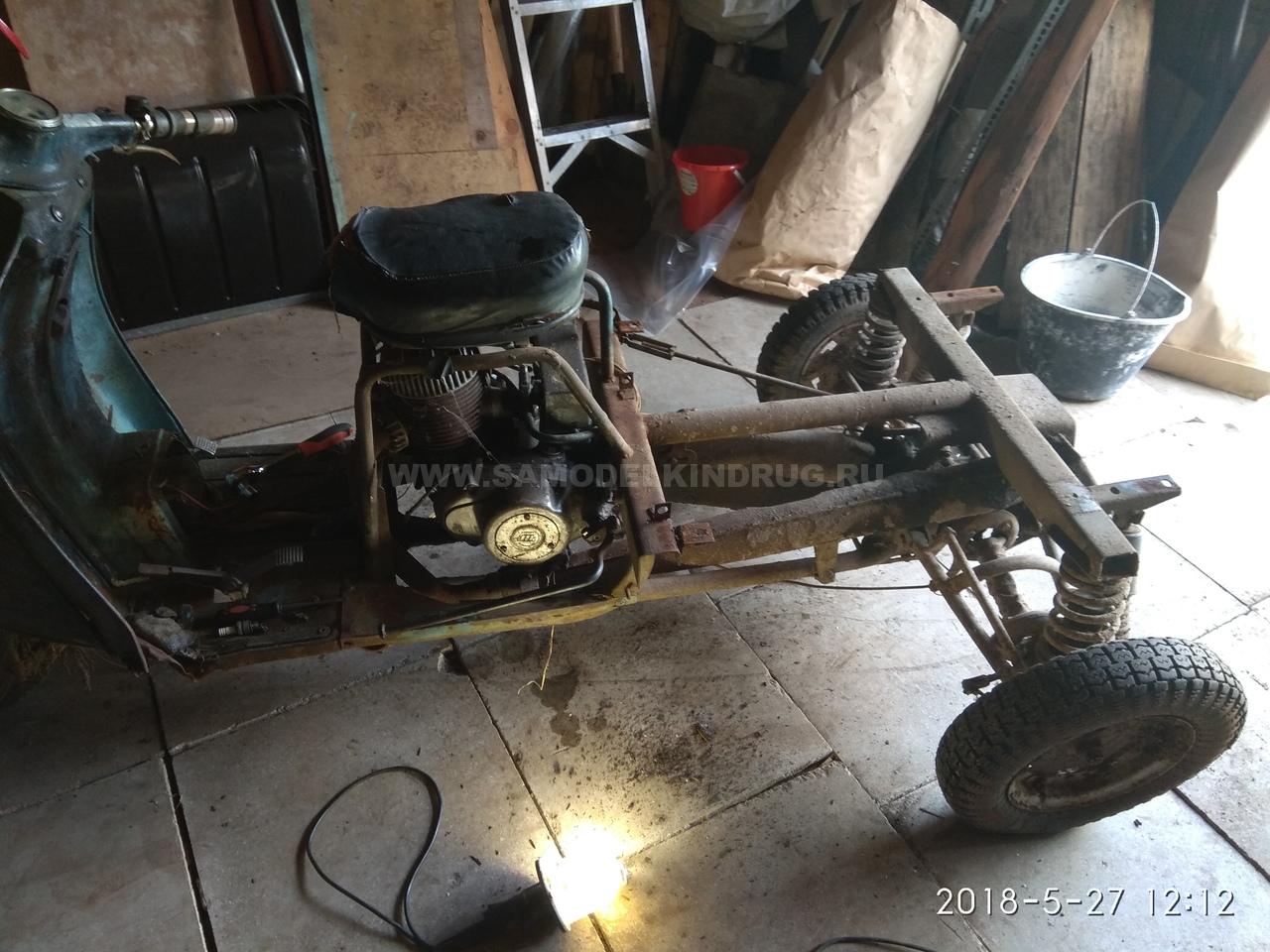 - Снижение веса. Для этого потребуется убрать «лишнее» оборудование. К нему относится обвес в виде крыльев, капота и обтекателей, а также всё электрооборудование. Для перевозки грузов по селу летом это всё вряд ли потребуется.