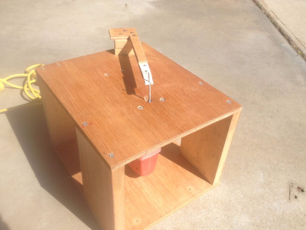 Приложив немного усилий, вы получите практически настоящий настольный лобзиковый станок. Он, конечно, не заменит настоящего станка, но учитывая его нулевую стоимость, является отличным вариантом.