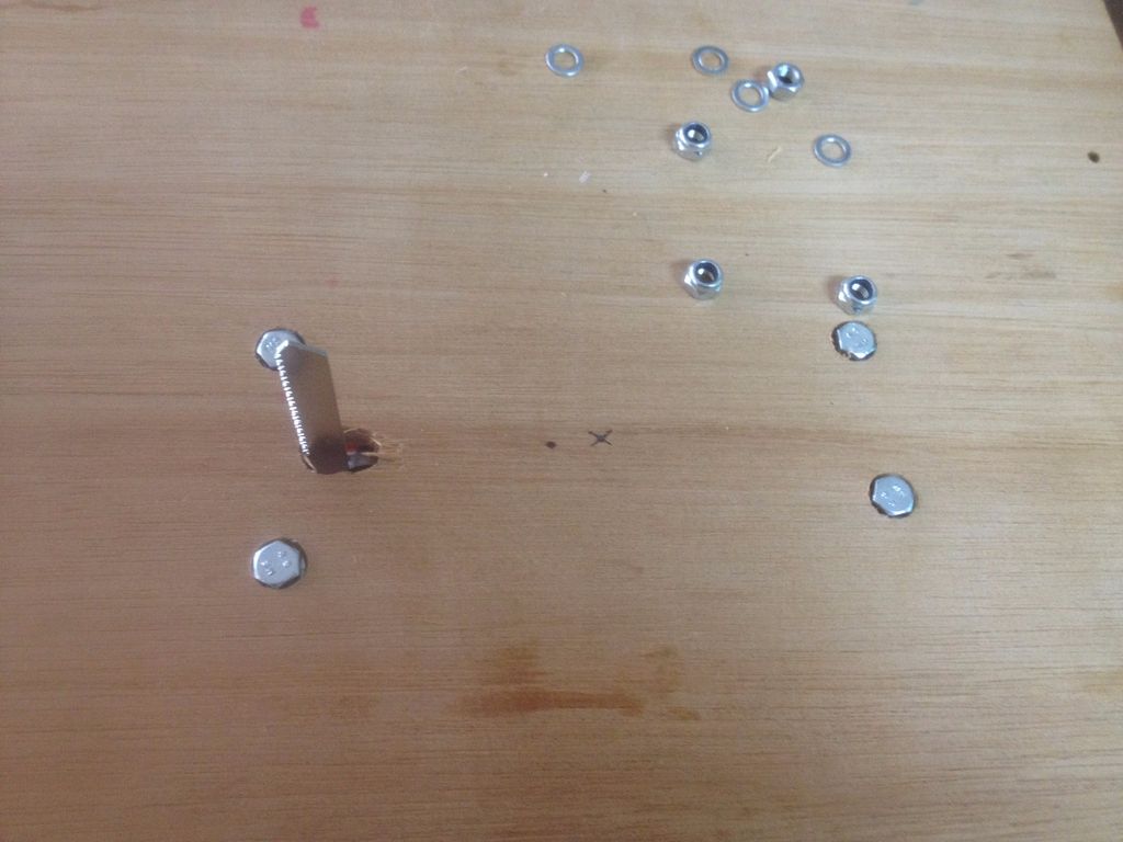 - В расширение каждого монтажного отверстия вложите шайбу, вставьте в отверстия болты и закрутите их с другой стороны гайками. Закрутить болты было немного сложно, поэтому я фиксировал головку каждого болта плоской отверткой, и крутил с другой стороны гаечным ключом.
