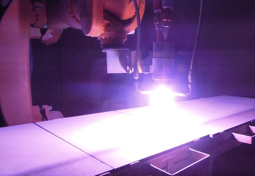 - Рабочая атмосфера накачивается давлением и частицами порошка (получается плазма высокой температуры, переносящая порошковые элементы на основание обрабатываемого изделия).