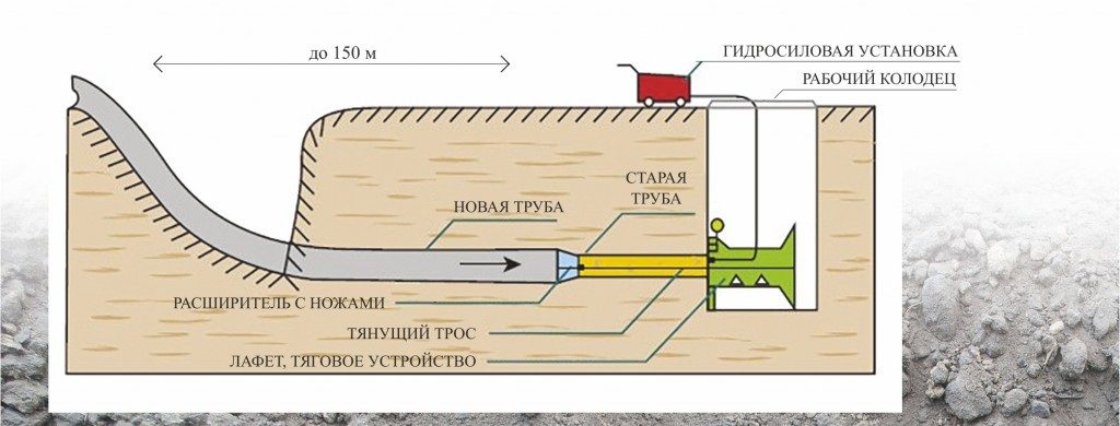 Метод разрушения – самый распространенный способ санации трубопроводов во всем мире. Данная технология нашла широкое применение при замене чугунных, стальных, железобетонных и других видов трубопроводов на полиэтиленовые, почти вечные трубы водопровода, канализации и тепловых сетей.