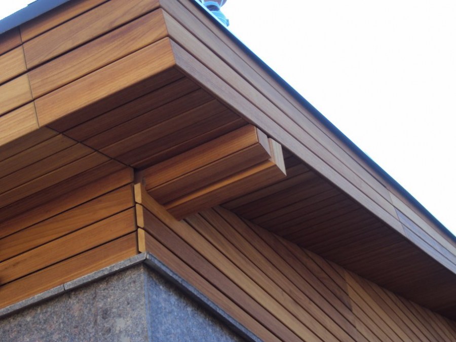 Деревянная вагонка. Выбирать данный материал следует с особой тщательностью: подшивка карниза крыши эксплуатируется на открытом воздухе, соответственно, вагонка должна быть выполнена из качественной древесины средней влажности и иметь достаточно большую толщину – это позволит избежать коробления.