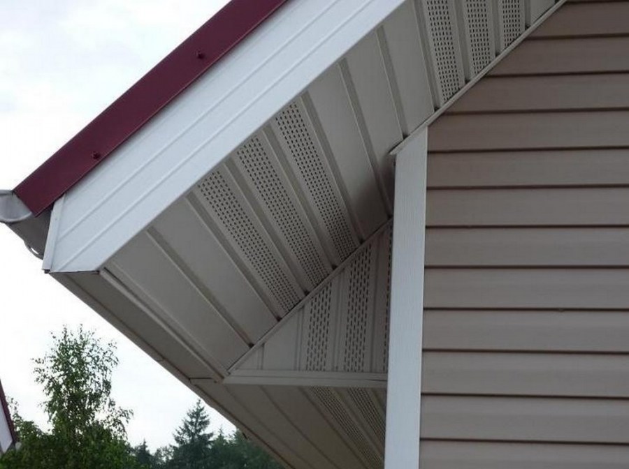 Функции: софит защищает подкровельное пространство от влаги, пыли и мелкой живности (птиц, насекомых), а также обеспечивает кровле эстетичный завершённый вид.