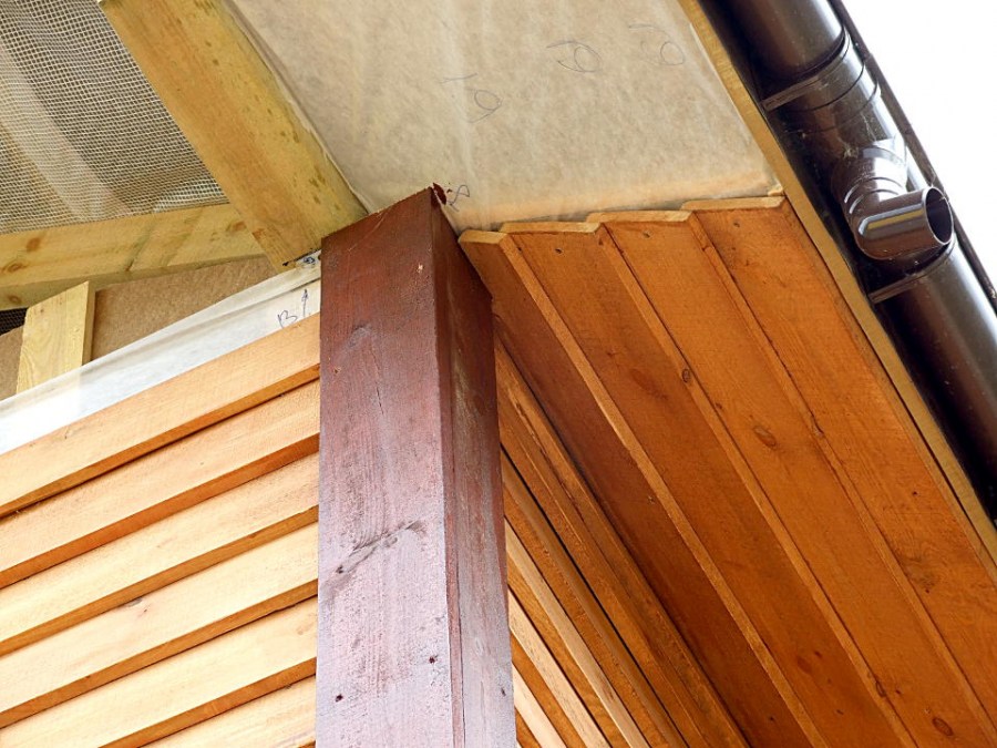 - Монтаж подшивки следует выполнять таким образом, чтобы одна часть находилась на доске, а другая — на брусе.