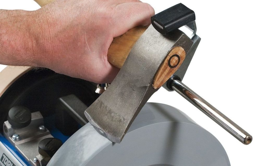 Для правки или заточки лезвия инструмента можно воспользоваться электрическом точильным станком. Лучше выбирать модели с двумя точильными кругами.