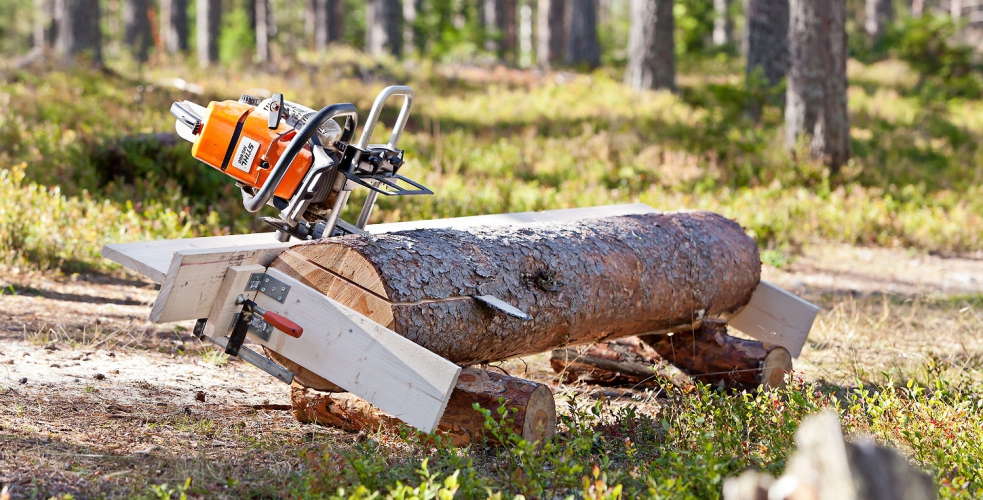 Во время распиловки бензопилой, инструмент подвергается большой нагрузке. Бытовая бензопила быстро выйдет из строя. Лучше пользоваться профессиональным инструментом. Хороший вариант — бензопила Stihl MS 660 или Stihl MS 880. Эти модели имеют мощность более 7 лошадиных сил, что достаточно для продолжительной работы при больших нагрузках.