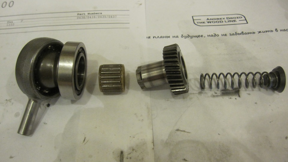 Сняв промежуточный вал, вы доберетесь до «пьяного подшипника». О разрушении подшипника качения указывает разбитая обойма, разбросанные шарики, куски обоймы.