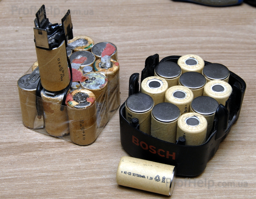 Для разборки аккумулятора шуруповерта вам необходимо раскрутить болты, соединяющие корпус, или разделить соединения корпуса на клеевой основе при помощи паяльника. Внутри аккумулятора находится несколько никель-кадмиевых батарей, имеющих определенную емкость и несущих заряд. В случае ремонта аккумулятора требуется их замена на новые.