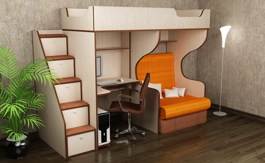 Кровать-чердак с диваном внизу – это многофункциональная мебель.