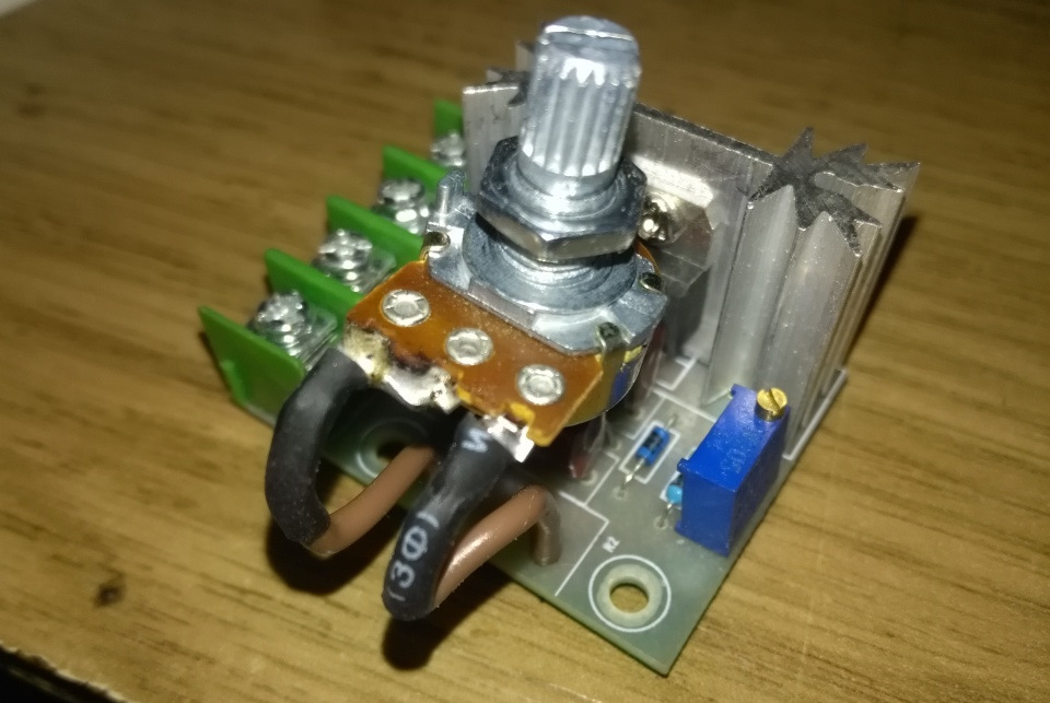 Увидев на Али блок позволяющий снизить обороты, купил такой блок. Получил, подключил, работает. Действительно, обороты снизились, до того уровня, когда разрушение щеток не происходит. Не скажу, что можно снизить эти обороты до нуля, но практически на самом минимуме, уменьшается в два раза.