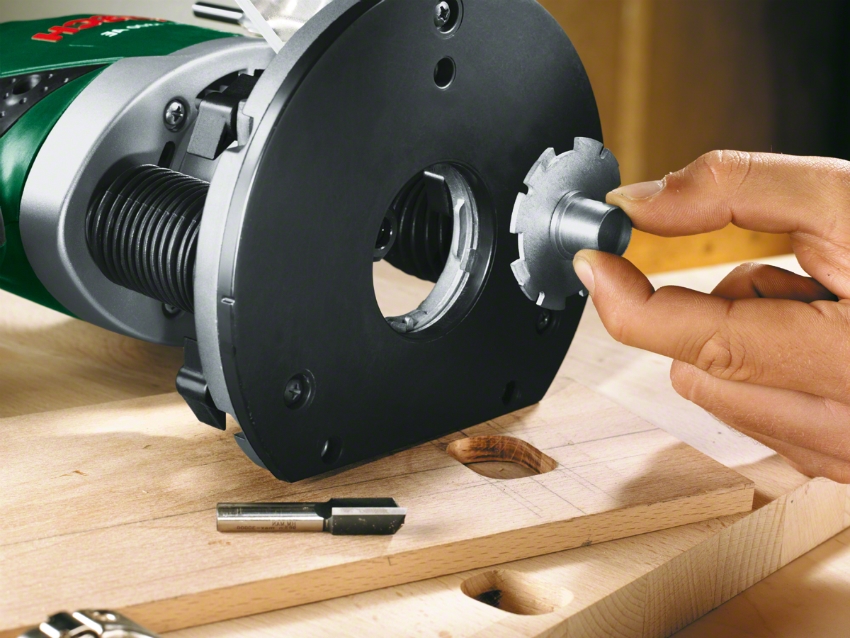 В комплекте с фрезером может идти боковой упор и направляющая шина. Некоторые модели имеют копировальную втулку и линейку-циркуль. Другие же устройства оснащены патрубком для подсоединения пылесоса.