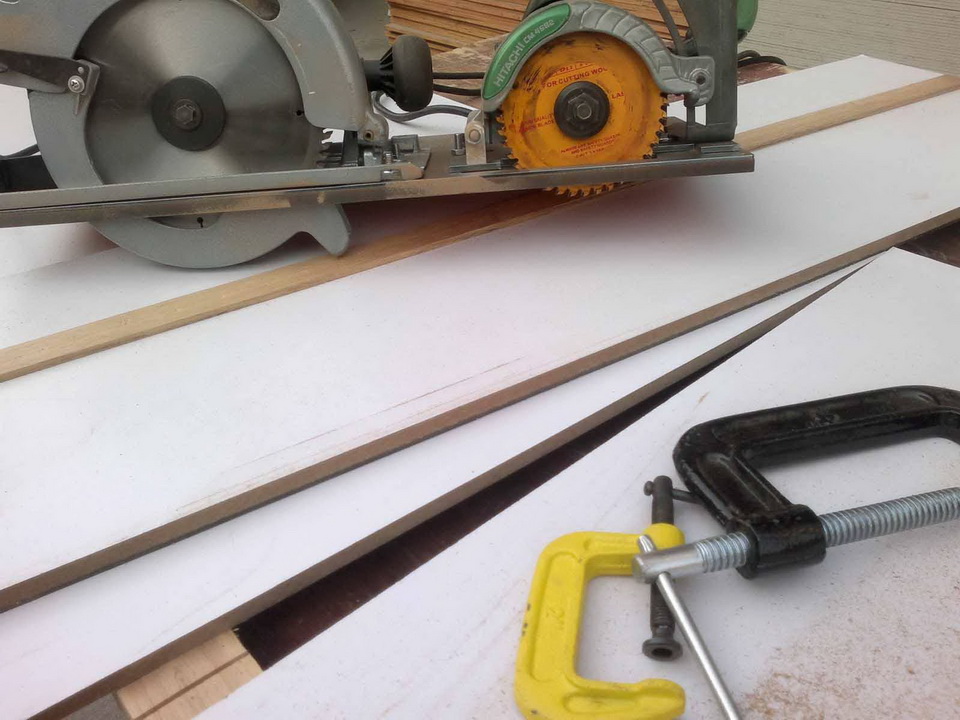 Таким образом, поверхность подготовлена непосредственно для распиливания. Если есть возможность и позволяет пространство, желательно плиту будущего рабочего стола на время процесса распила открепить.