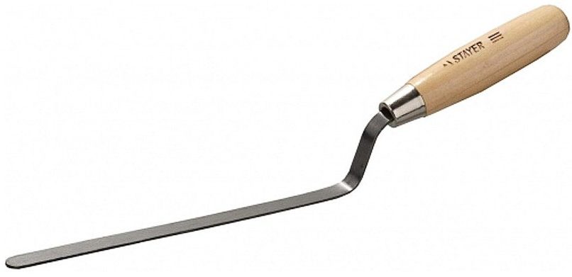 Представляет собой универсальное приспособление, которое может использоваться для уплотнения швов в кладке, сделанной из камня либо кирпича. При изготовлении этой модели использовалась качественная инструментальная сталь. Благодаря этому данное приспособление обладает продолжительным периодом эксплуатации. Одним из достоинств этого инструмента является надежная, прочная, эргономичная рукоять, сделанная из качественного дерева. Она обеспечивает надежный уровень хвата и простоту применения во время выполнения работ любой сложности. Рабочая часть этого изделия имеет плоскую форму, шириной 8 мм.