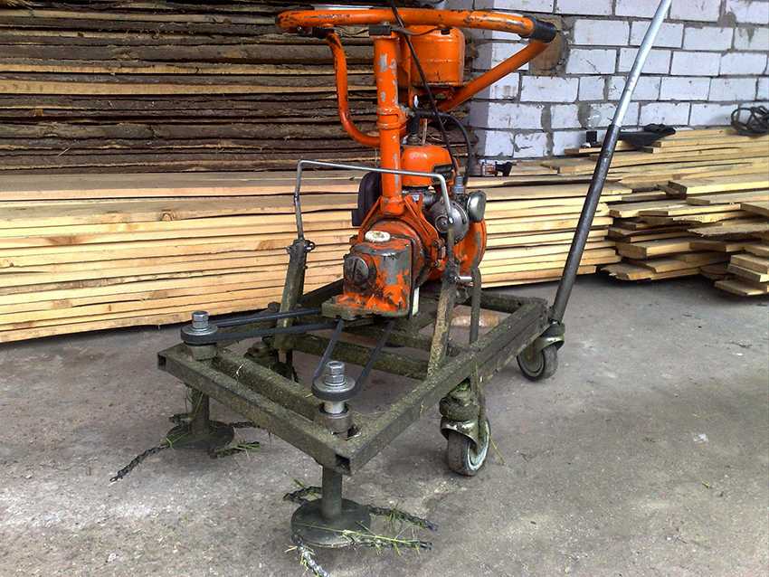 - от бензопилы «Дружба» — двигатель, топливный бак, редуктор;