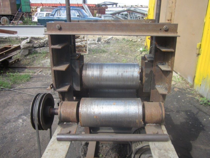 - Трехвальцевые станки . С помощью такого устройства можно деформировать и трубы, и листы. Кроме этого, станки данного типа дают возможность обработки профильного проката (уголков и пр.). Генератор прижимного усилия определяет уровень мощности и производительности данного оборудования. На станках с обычной струбциной, с которой связан прижимной вальц, производительность находится на отметке ниже среднего: изготовить подобный прокатный станок для профильной трубы своими руками под силу любому слесарю. При использовании вместо струбцины гидравлического привода станок данного типа может сгибать даже тавровые балки.