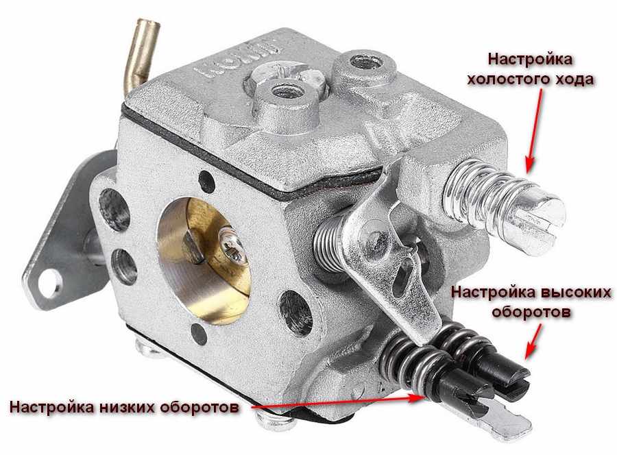 Каждый карбюратор на бензопилах имеет в конструкции три регулировочных болта с пружинами. Каждый болт отвечает за регулировку соответствующего параметра. Таковыми параметрами являются: